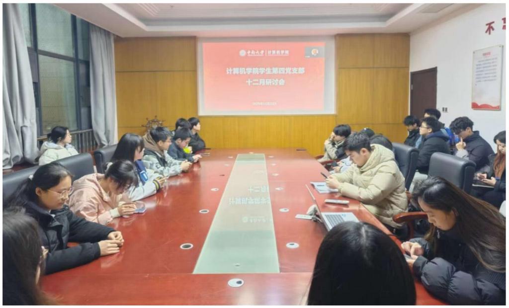 为持续深化党员教育,引导学生党员将个人成长融入时代发展,2025年10月26日晚19:00,中南大学计算机学院学生第四党支部在信息楼114教室举办主题为 “从‘听故事’到‘创未来’”十二月研讨会。支部全体党员及发展对象参会,围绕新时代青年党员的使命担当展开深入交流。