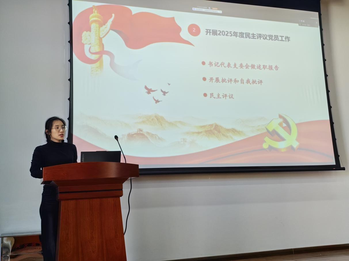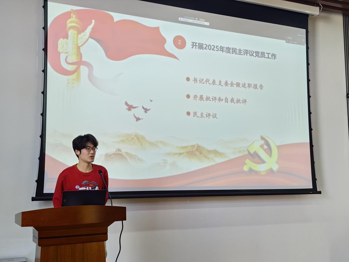 随后,会议严格按照程序开展2025年度民主评议党员工作。姜雨辰同志代表支委会作2025年度述职报告,报告全面回顾了过去一年支部在政治学习、组织建设及特色活动等方面取得的成效,深刻查摆了工作中存在的不足,并明确了下一年度的改进方向。