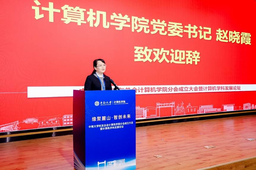 计算机学院党委书记赵晓霞代表学院对校友们的归来表示热烈欢迎,并介绍了学院近年来的发展成果,感谢学校和校友的支持。她表示,计算机学院的每一步成长都离不开校友们的关注与鼎力相助,校友是学院最宝贵的资源与财富,希望以此次大会为契机,继续与校友们同心聚力、并肩前行,共同书写学院更加灿烂辉煌的新篇。