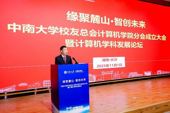 11月1日,在中南大学校友总会的指导下,“缘聚麓山·智创未来”——中南大学校友总会计算机学院分会成立大会暨计算机学科发展论坛在中南大学潇湘校区信息楼隆重举行。来自五湖四海的189名计算机学院校友重返母校,共同见证这一盛会,共叙情谊,共谋发展。