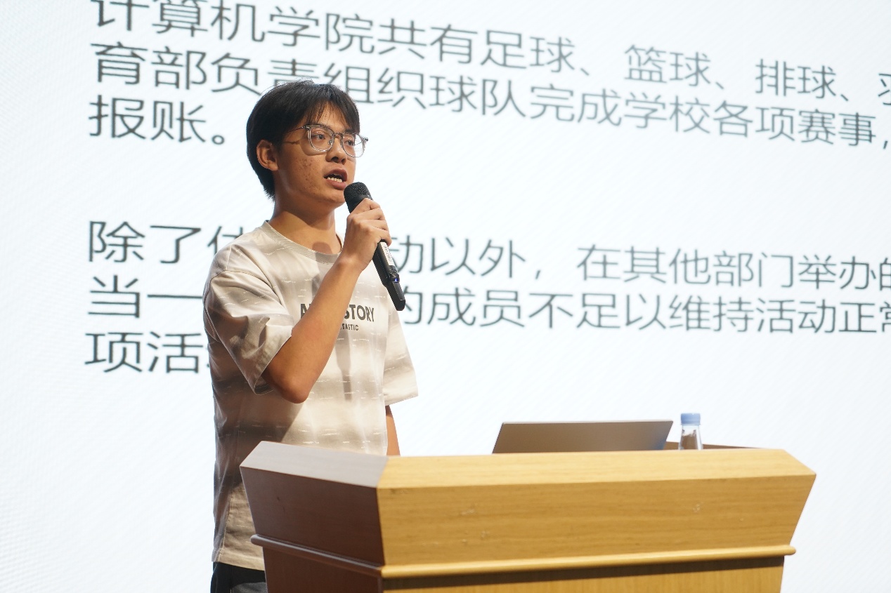 计算机学院学业发展与服务中心主任邓浩波、大学生科学技术协会主席孙豪、大学生朋辈心理互助会培训部副部长王小骐,分别对各自所在组织进行了详细介绍,清晰展现了各组织的活动内容与重要作用。