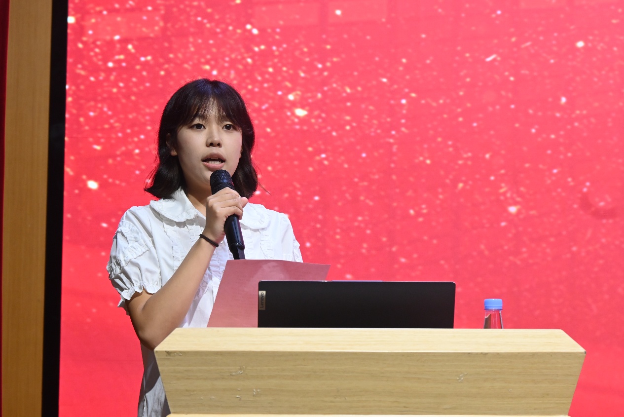 获奖寝室长代表刘梓婵进行发言,她分享了所在寝室以“德智体美劳”为指引的建设经验,指出“五好寝室”对培养积极向上的生活方式及对全方位育人的重要实践意义,并表示会珍惜荣誉、发挥模范作用,带动更多人参与到学院的“五好寝室”文化建设之中。
