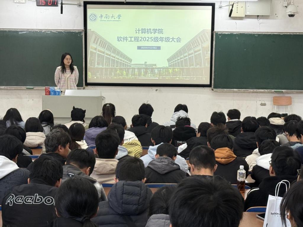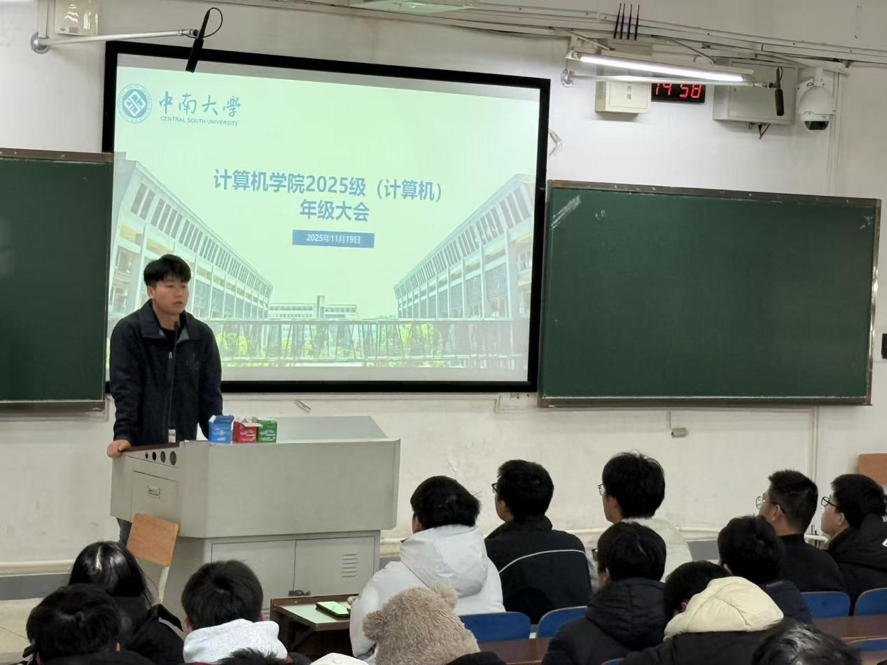 为帮助2025级新生尽快适应大学生活、明确发展方向,2025年11月19日下午3点,计算机学院在教学楼D座隆重举行2025级新生年级大会。会议内容详实、氛围温馨,为初入校园的“新计算机人”送上了一份全面的入学指南。