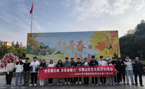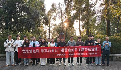 为深入强化党员党性修养,凝聚支部奋进力量,响应学校“中南青年万人健体强心计划”之“趁青春,去登山”号召,近日,计算机学院研究生第十党支部秉持“强身健体、拥抱自然、陶冶情操”的理念,组织开展“登岳麓红峰,承革命薪火”红色主题登山活动。支部党员从校本部图书馆前坪集结出发,沿山路徒步至肖劲光铜像纪念园,将红色教育、实践服务与思想研讨有机融合,以实际行动践行初心使命。