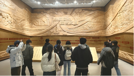 最后在刻有“知行合一、经世致用”的校训浮雕墙前,支部党员围站交流:有人对照墙上的校史时间轴,梳理计算机学科在学校的发展脉络;有人指着浮雕里的科研场景,结合自己的项目方向谈感悟,把校史与自身专业成长紧紧联结。