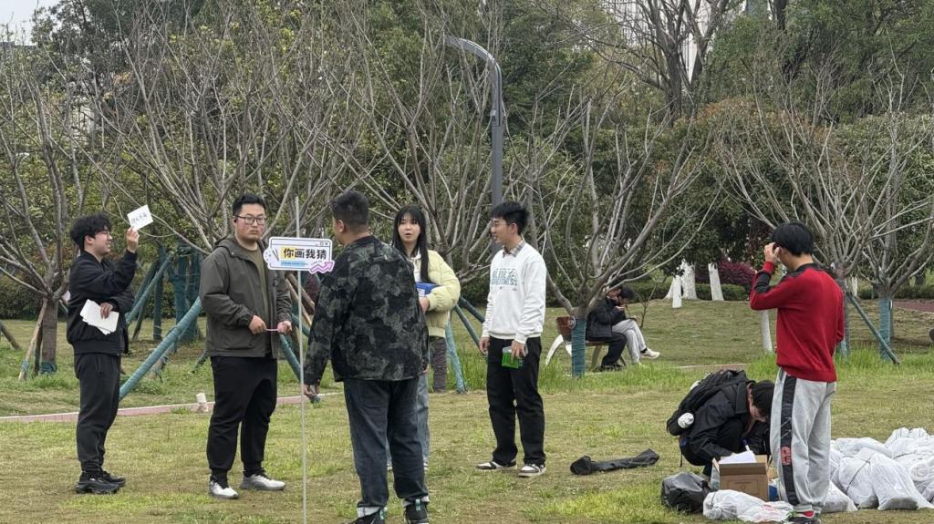 本次活动设置了“纸飞机大赛”“盲盒寻宝”“你画我猜”“猜方言听歌名”“一二三木头人”“盆栽拼装”六个活动摊位,为参与同学准备了丰富多彩的趣味体验。活动期间,同学们签到后由工作人员引导至游戏区,可自由参与折纸飞机、组队“你画我猜”、围坐拼装盆栽,或伴着音乐在D座及情人坡寻觅幸运盲盒。