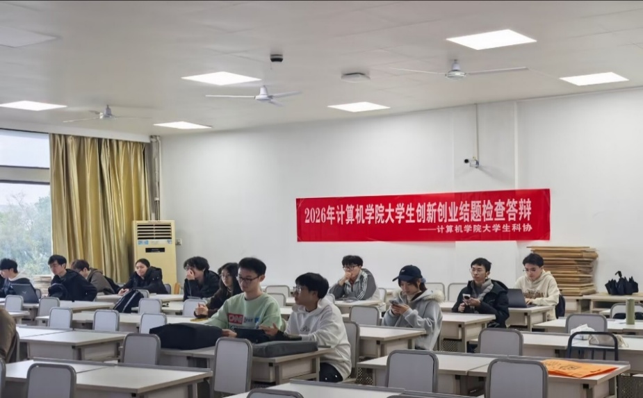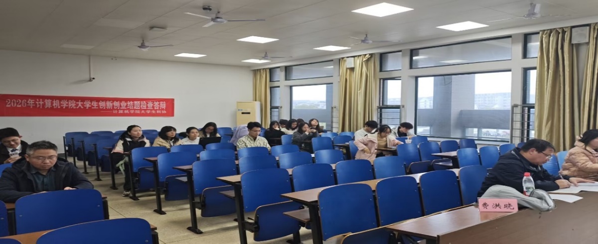 2026年3月28日,计算机学院2026年大学生创新创业训练项目结题答辩在潇湘校区A座教学楼顺利举行。本次结题答辩邀请到费洪晓、任胜兵、余腊生、赵欢喜、宋虹、杨柳、郑瑾共7位经验丰富的专家老师出席并担任评委,对46个创新创业团队的项目成果进行综合评定。