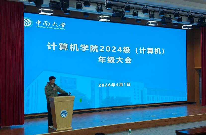 为全面总结年级学业情况,明确发展方向,助力学生成长成才,2026年4月1日下午,计算机学院2024级计算机科学与技术专业年级大会在信息楼108顺利召开。计算机学院党委副书记王新辉,计算机学院党委委员、计算机科学系主任张永敏、计算机科学与技术专业24级辅导员刘家忱及2024级全体同学参会。本次大会由刘家忱老师主持。